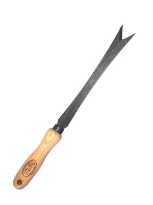 A szívós acélból kovácsolt, V-alakban élezett késsel mélyen a talajszint alatt vághatók el a gyomok gyökerei,