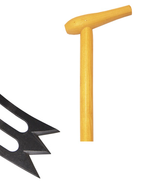 Ennek a robosztus kialkítású "push-spork"-nak a segítségével viszonylag könnyen eltávolíthatók a nagyobb, megfásodott szárú gyomok, sőt, a kisebb gyomfák is.
