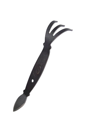 Egy darab, a szokásos csúcsminőségű acélból kovácsolt, két oldalú kerti szerszám.